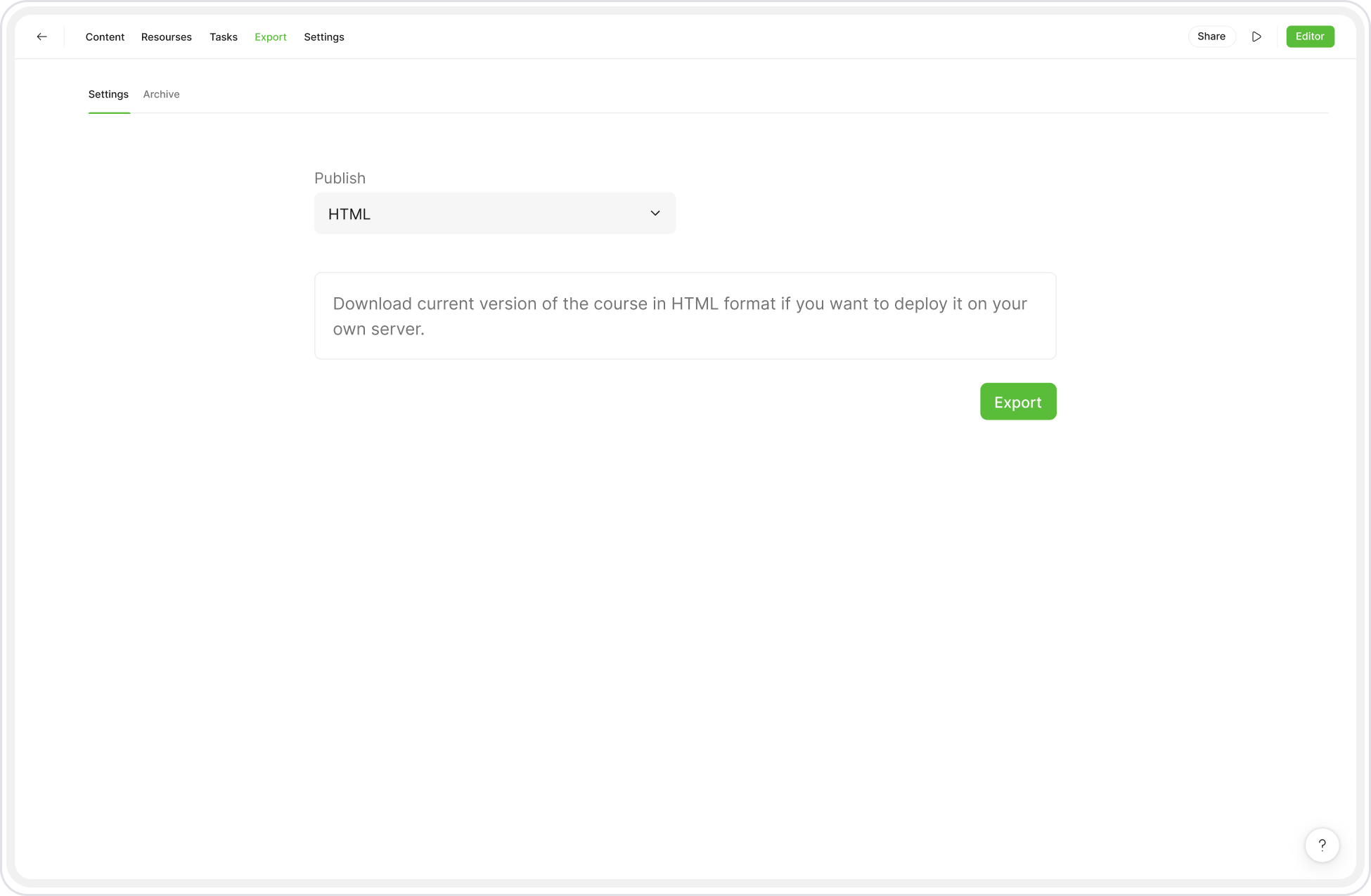 Export your Parta.io courses as HTML for seamless integration into websites, wikis, or your own content platforms.